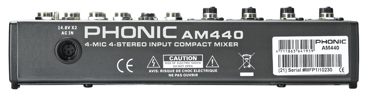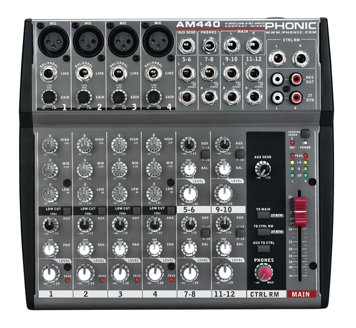 Мікшерний пульт, 4 мікр / лін (+48 В, 3-х смуговий еквалайзер, Low Cut 75 Гц) + 4 стерео каналу, MAIN L / R Stereo 1/4 "TRS Jack, 1 AUX Send, стерео EFX / AUX Send, вихід на навушники і монітор CTRL, 3-х смуговий EQ на моновхода, 242 x 55 x 255 мм, 1.7 кг