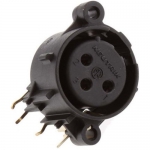 XLR-гніздо 3-контактне, "мама" для шасі, пластиковий корпус, сталевий замок-фіксатор, контакт 1 відключений від шасі і землі, горизонтальний монтаж на платі