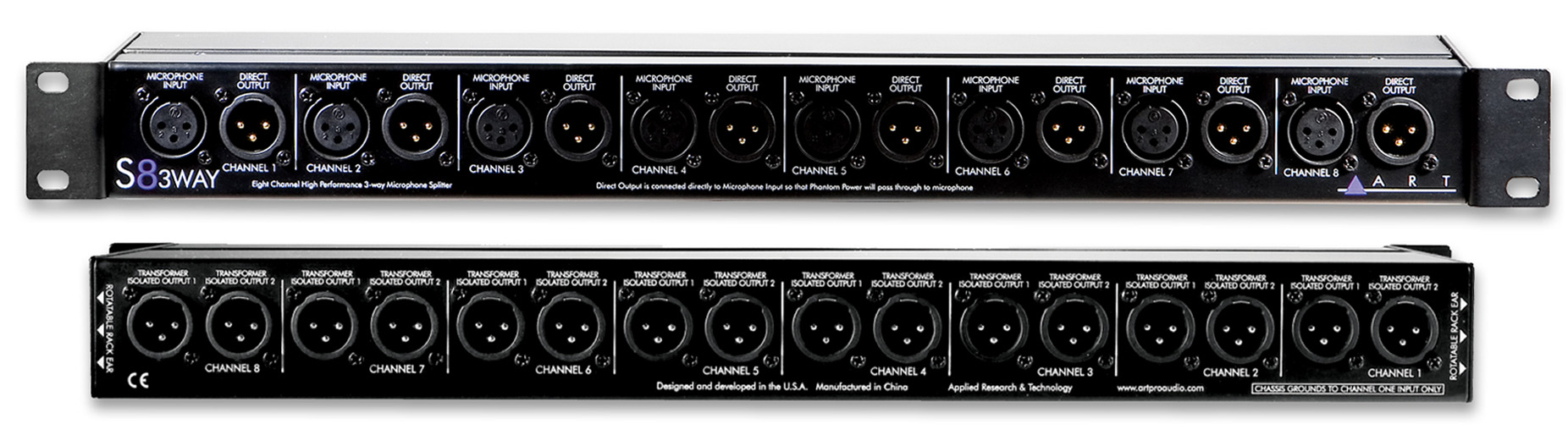 8-канальний мікрофонний спліттер, використовується для поділу восьми балансних мікрофонних сигналів в 24. Пристрій безперешкодно пропускає фантомне живлення, що дозволяє використовувати його з конденсаторними мікрофонами.