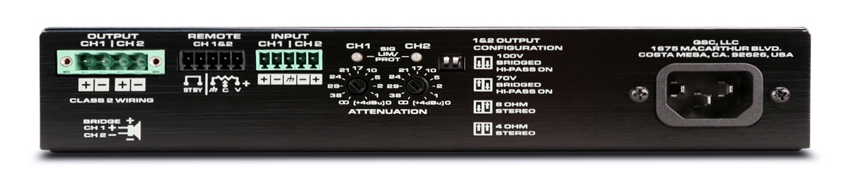 Підсилювач потужності (1 / 2U), клас D, 2 х 200 Вт - 8 Ом, 4 Ом, міст 400 Вт - 8 Ом, 350 Вт - 70 / 100В, 1,6 кг. Вбудований лімітер, конвекційне охолодження, Дистанційне керування.