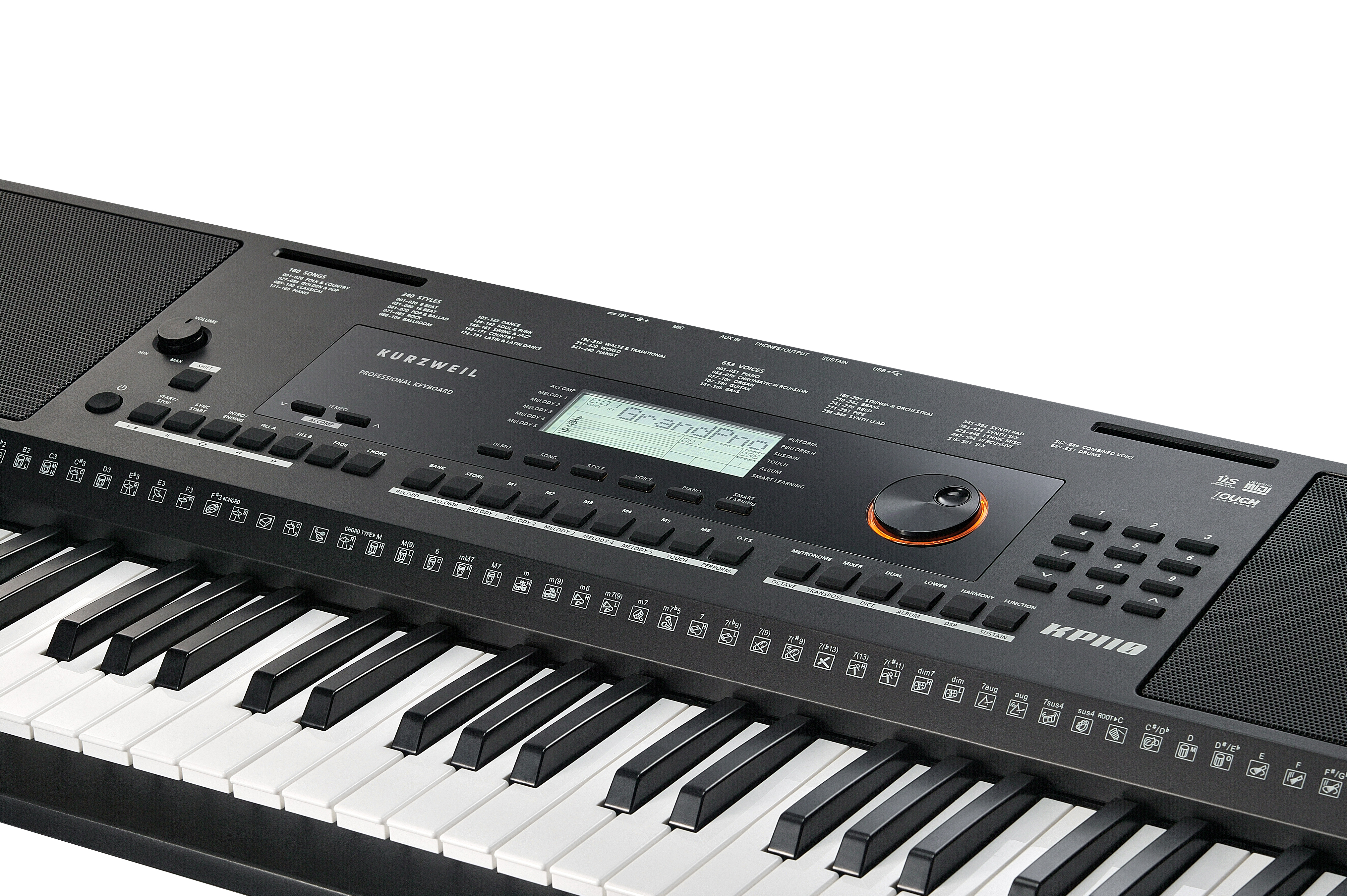 Синтезатор з автоакомпанементом. 61-клавішна, синтезаторна клавіатура, з 3 рівнями чутливості на вибір; Мульти-функціональний ЖК-дисплей; 128-голосна поліфонія; 653 експресивні звуки; 48 пресетів для швидкого вибору «favorites»; Функція поділу клавіатури і нашарування тембрів; Транспонування +/- одна октава; Ефекти: EQ, Reverb, Chorus; Автоакомпанемент: 240 стилів + 10 призначених для користувача стилів; Рекордер / Сіквенсор: 6 треків, 10 призначених для користувача пісень; Акустична система: 2 х 10-ватна 2-спікерна стерео-система; Стерео ¼"лінійні виходи; Стерео ¼" лінійні входи; Мікрофонний вхід: ¼ "Hi-Z; 1 стерео вихід ¼" для підключення навушників; MIDI: через USB; 1 вхід для педалі (призначеної на sustain, soft, start / stop або вибір пам'яті); Комплектація: блок живлення, пюпітр; Розміри: 13,3 см (Висота) х 95,6 см (Ширина) х 36 см (Глибина); Вага: 5,3 кг;