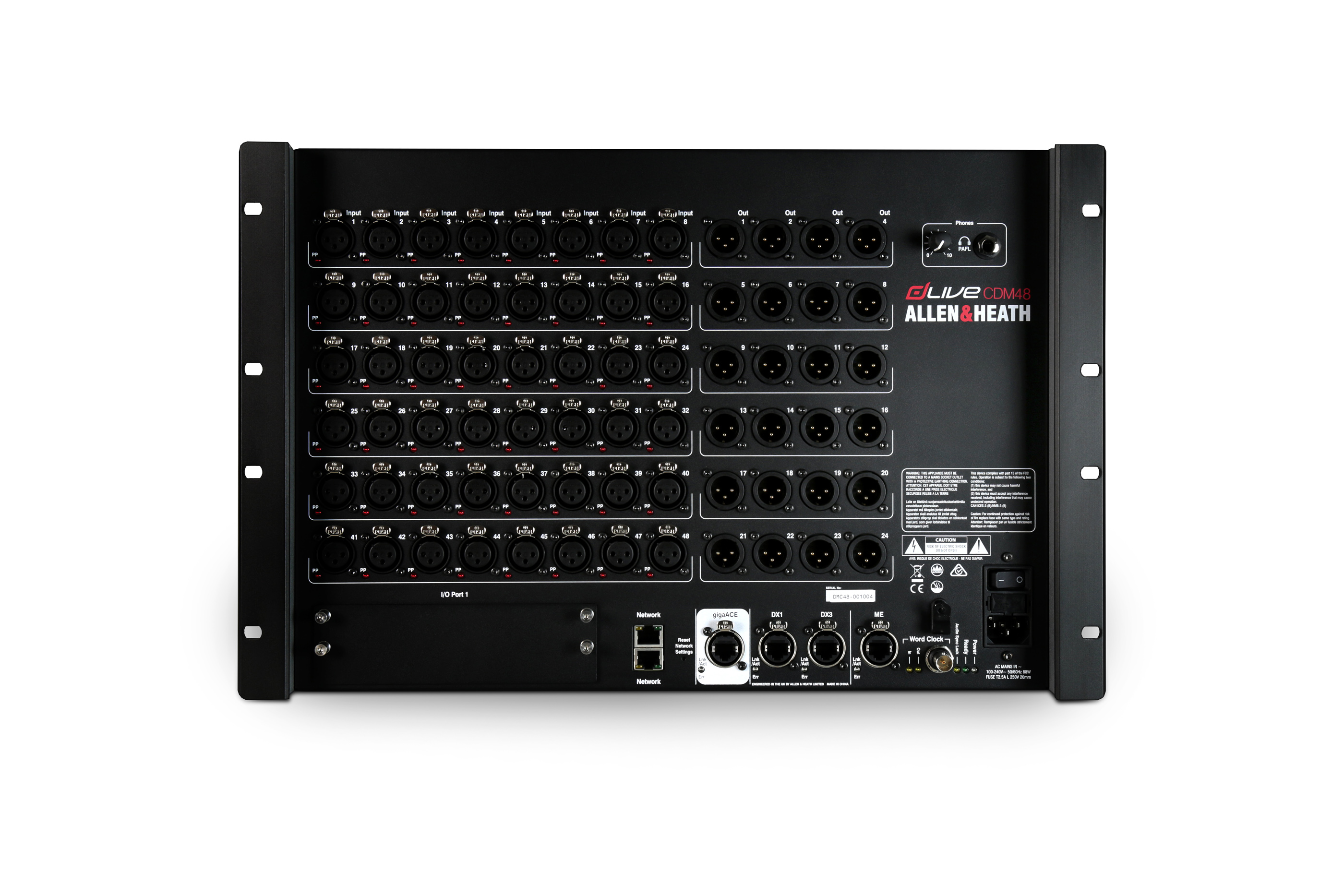 Мікшерний рек системи dLive, 96кГц, підтримує 128 входів / 64 виходи, 48 локальних mic / line входи XLR, 24 локальних line виходів XLR, 1 x 6,3" PAFL, 16 FX процесорів, інтерфейси gigaACE, 2 x DX, ME, 1x I/O слот розширення, 2 x Network, Wordclock BNC I/O, 1 блок живлення