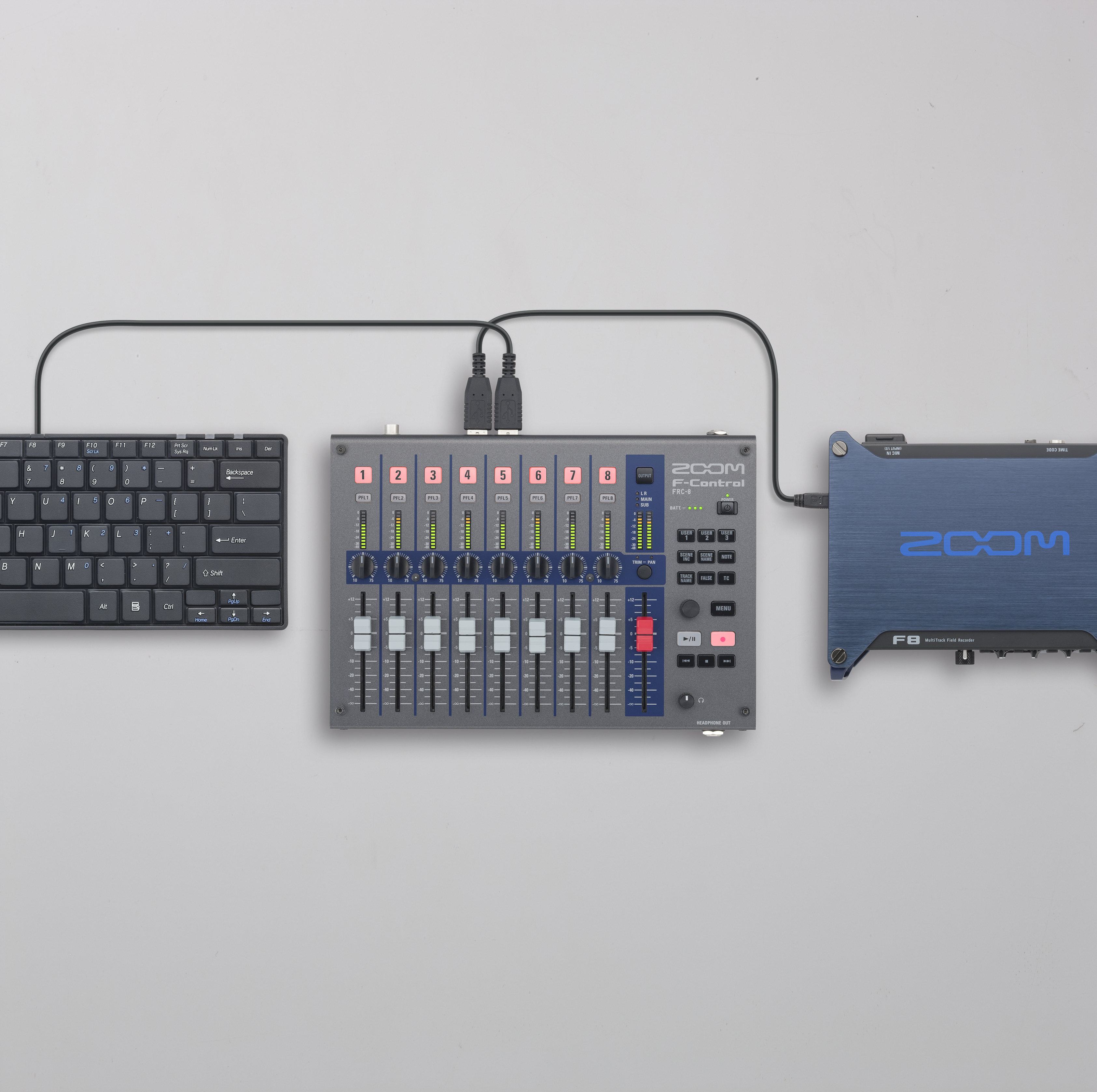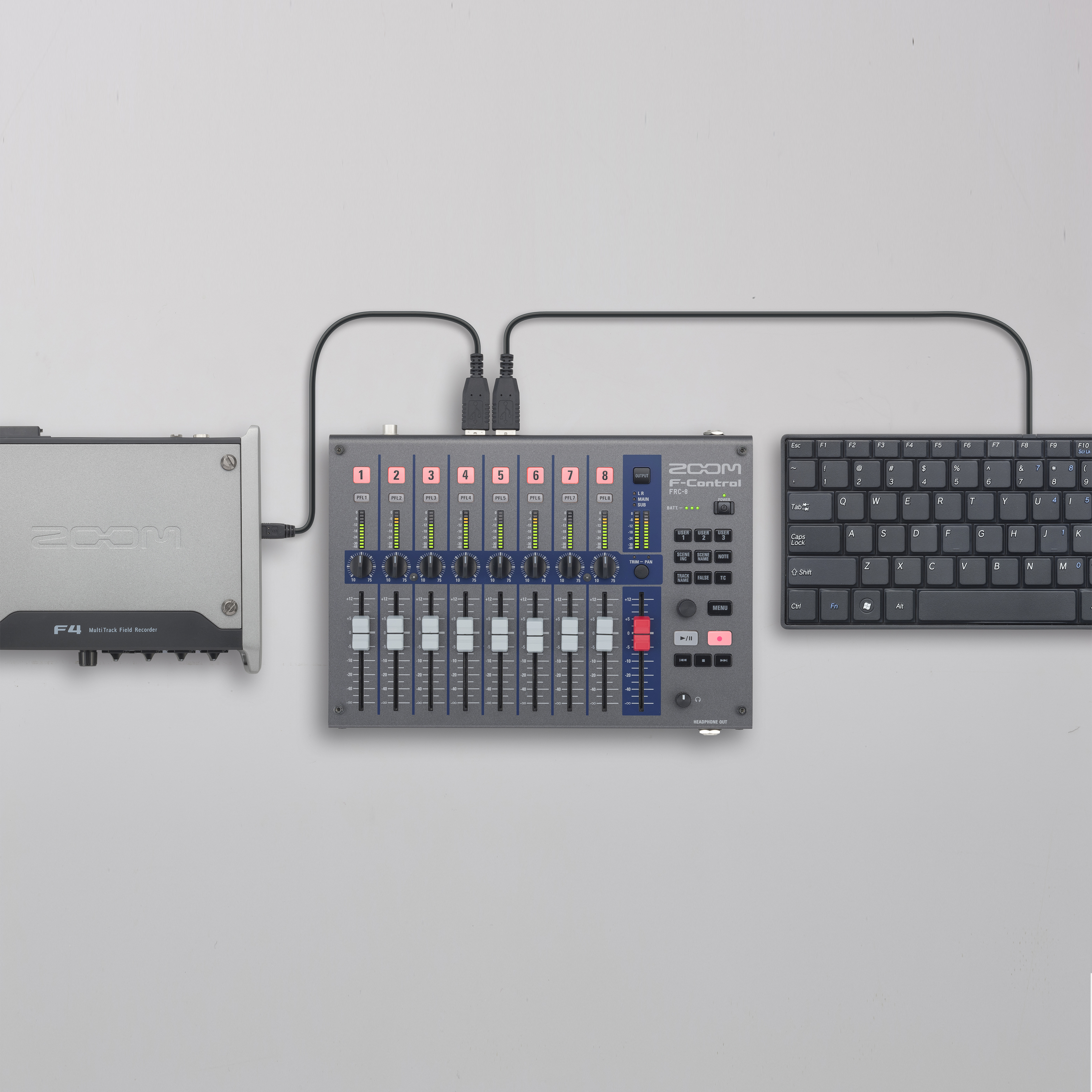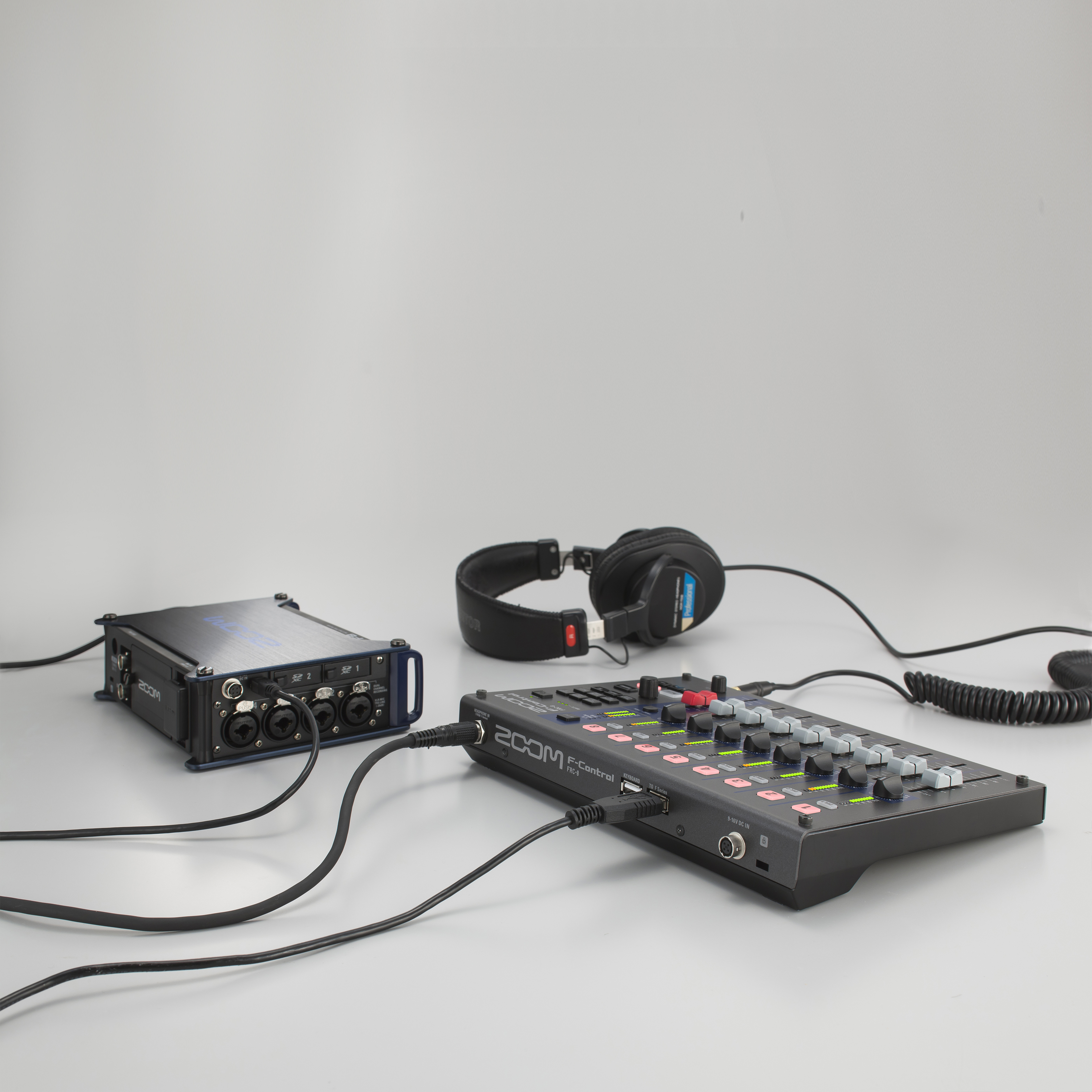 F-Control - це мікшерний контролер, який дає максимальний контроль і гнучкість під час запису в польових умовах. Сумісний з рекордерами Zoom F8n, F8, F6, та F4. 9 60-мм фейдерів (8 + майстер); ¼" вхід для навушників; USB-порт для підключення зовнішньої клавіатури; 12-сегментні LED-індикатори для моніторингу каналів і рівнів вихідного сигналу; кнопки упр. Timecode; живлення: 4 батарейки AA, підкл. АКБ (роз'єм 4-pin HIROSE) і USB-шина для F4 (недоступна для F8); металевий корпус. Комплектація: стереокабель - 1,5 м; USB-кабель - 1,5 м; 4 батарейки AA. Розміри: 245,0 мм x 180,7 мм x 47,4 мм. Вага: 980 г (без батарейок)