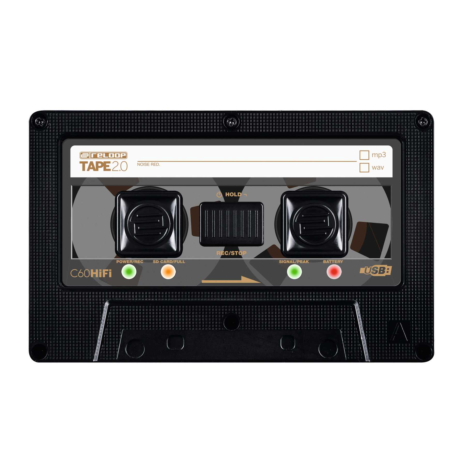 Reloop TAPE 2 - це пристрій запису звуку для ді-джеїв з вбудованим літій-іонним акумулятором і ретро-дизайном у вигляді касети, що дозволяє записувати ваш мікс в форматі WAV або MP3 безпосередньо на карту microSD. Програвачі компакт-дисків, DJ-мікшери або динамічні мікрофони можуть бути підключені безпосередньо до TAPE 2 через вхід 3,5 мм. Використовуючи вихід THRU, аудіосигнал можна контролювати за допомогою навушників або він може бути переданий на основні динаміки. Це рекомендується для джерел звуку з єдиним виходом, які не мають окремого виходу для запису (REC). Вгоди: 1x лінійний / мікрофонний стерео 3.5 мм Виходи: 1x лінійний стерео 3.5 мм (THRU) microSD слот 128 GB (FAT32) Записуваний формат: WAV or MP3 (320 kbp / s) Якість запису: 24-bit / 48 kHz Розміри: 103 x 14 x 65 мм Вага: 59 г Живлення: 5V micro-USB В комплекті. кабель RCA / стерео 3.5 мм, micro USB кабель, 3 наклейки
