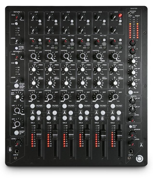 Model 1 - це мікшер безкомпромісної якості збірки, інтуїтивно зрозумілого тактильного керування та чудової аналогової схеми. 2 send и 2 return канали. 3 високоякісних Phonо попередніх передпідсилювача з незалежним заземленням. SCULPT еквалайзер на всі 6 каналів з можливістю налаштування, а також трисмуговий еквалайзер на Master і двосмуговий на Booth виходи. 2 незалежних канали попереднього прослуховування та два роз'єми живлення. Динамічний діапазон > 112dB Вихідна потужність +28dBu Balanced +23dBu Unbalanced Вага: 5,4 кг Габарити: 37 x 32 x 11,5 см
