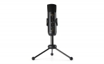 Конденсаторний USB мікрофон розроблений для підкастів, прямих трансляцій, програм комунікації та якісного запису звуку. Вбудований 1/8-дюймовий вихід для навушників з контролем гучності. Елементи управління посиленням та відключенням звуку. Підключення по USB-C для запису та моніторингу з низькою затримкою. Міцна конструкція. Підтримка ОС Windows, MacOS, Android та iOS. Діаметр мембрани: 14мм. Частотний діапазон: 30–18 000 Гц. Кардіоїда. Чутливість: -32 дБ ± 1 дБ. Максимальний звуковий тиск: 130 дБ. Частота дискретизації: 48kHz / 16-bit. Комплектація: настільний штатив, мікрофон і USB-С кабель (3м), керівництво користувача