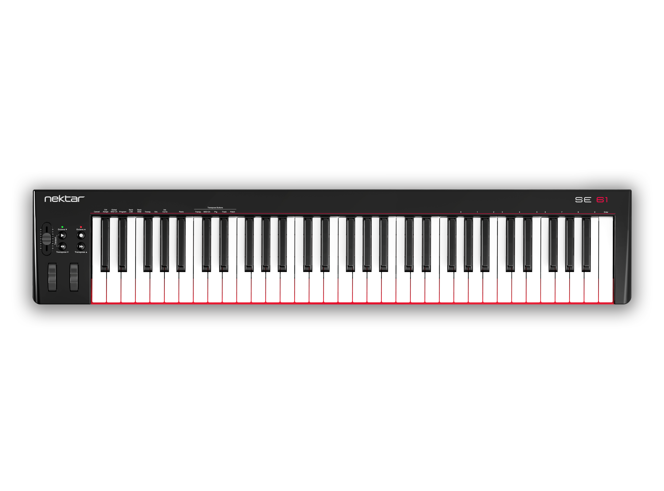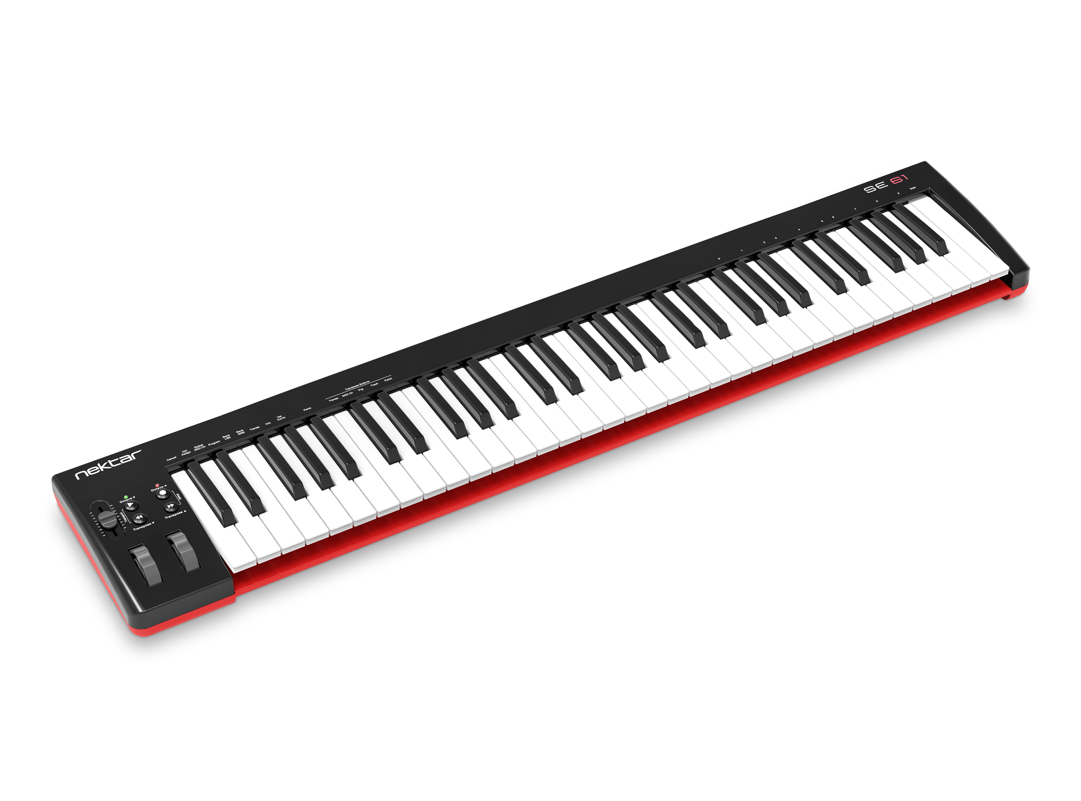 MIDI-клавіатура Nektar SE61 має 4 кнопки, світлодіодні індикатори, колеса Pitch Bend / Modulation і 30 мм фейдер. Кнопки дозволяють транспонувати використовувану октаву і можуть бути задіяні для управління різними настройками. SE61 може тісно взаємодіяти з популярними DAW і поставляється зі спеціалізованими програмами для повноцінної інтеграції в середу робочої станціі. Доступне регулювання гучності, управління призначається параметрами у режимі транспорту, який може контролювати відтворення, зупинку і запис. SE61 також підтримує можливість роботи з MIDI CC і може підключатися до iOs пристроїв. Для комутації, крім USB, у інструменту є TRS вхід дозволяє використовувати педалі. З MIDI-клавіатурою виробник постачає програму Bitwig 8-Track і пакет семплів Bitwig Essentials Package. Розміри: 98.5 x 19.7 x 6.9 см, Вага: 3 Кг.
