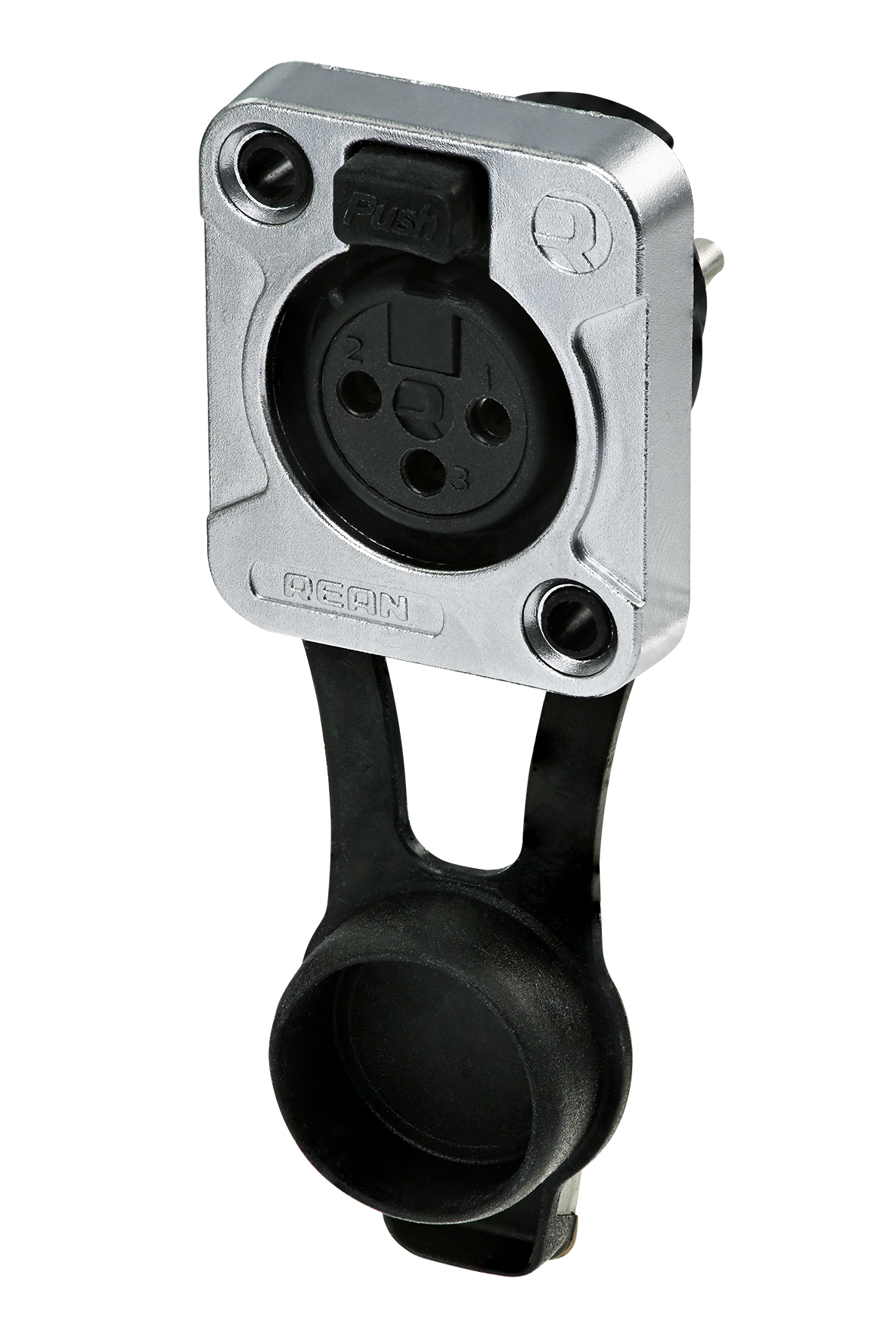 Панельний роз'єм XLR-"мама" 3-контактний, з замком, фланець типу D, гумова кришка, хромований корпус, контакти під пайку. В упаковці 100 шт.