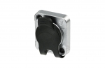 Панельний роз'єм XLR-"тато" 3-контактний, з замком, фланець типу D, гумова кришка, хромований корпус, контакти під пайку. В упаковці 100 шт.