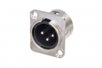 Панельний роз'єм XLR-"тато" 3-контактний, сталевий замок, фланець типу D, хромований корпус, контакти під пайку. В упаковці 50 шт.