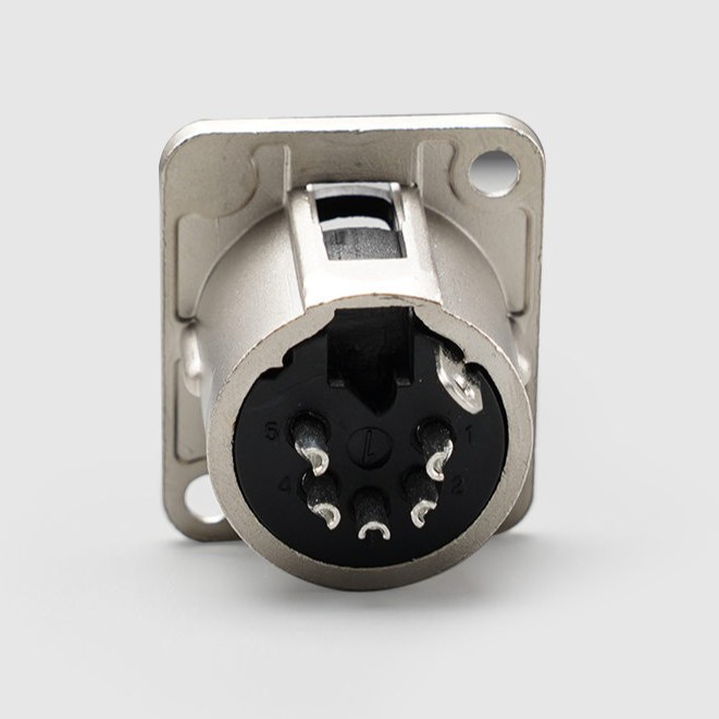 Панельний роз'єм XLR-"тато" 5-контактний, сталевий замок, фланець типу D, хромований корпус, контакти під пайку. В упаковці 50 шт.