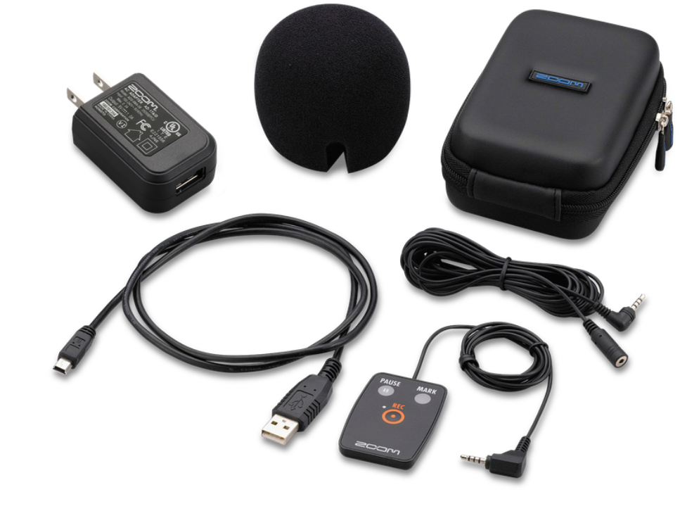 Комплект аксесуарів для портативного рекордера Zoom H2n. В комплекті: чохол, пульт дистанційного керування RC2, паралоновий вітрозахист, адаптер AD-17 (USB), USB кабель