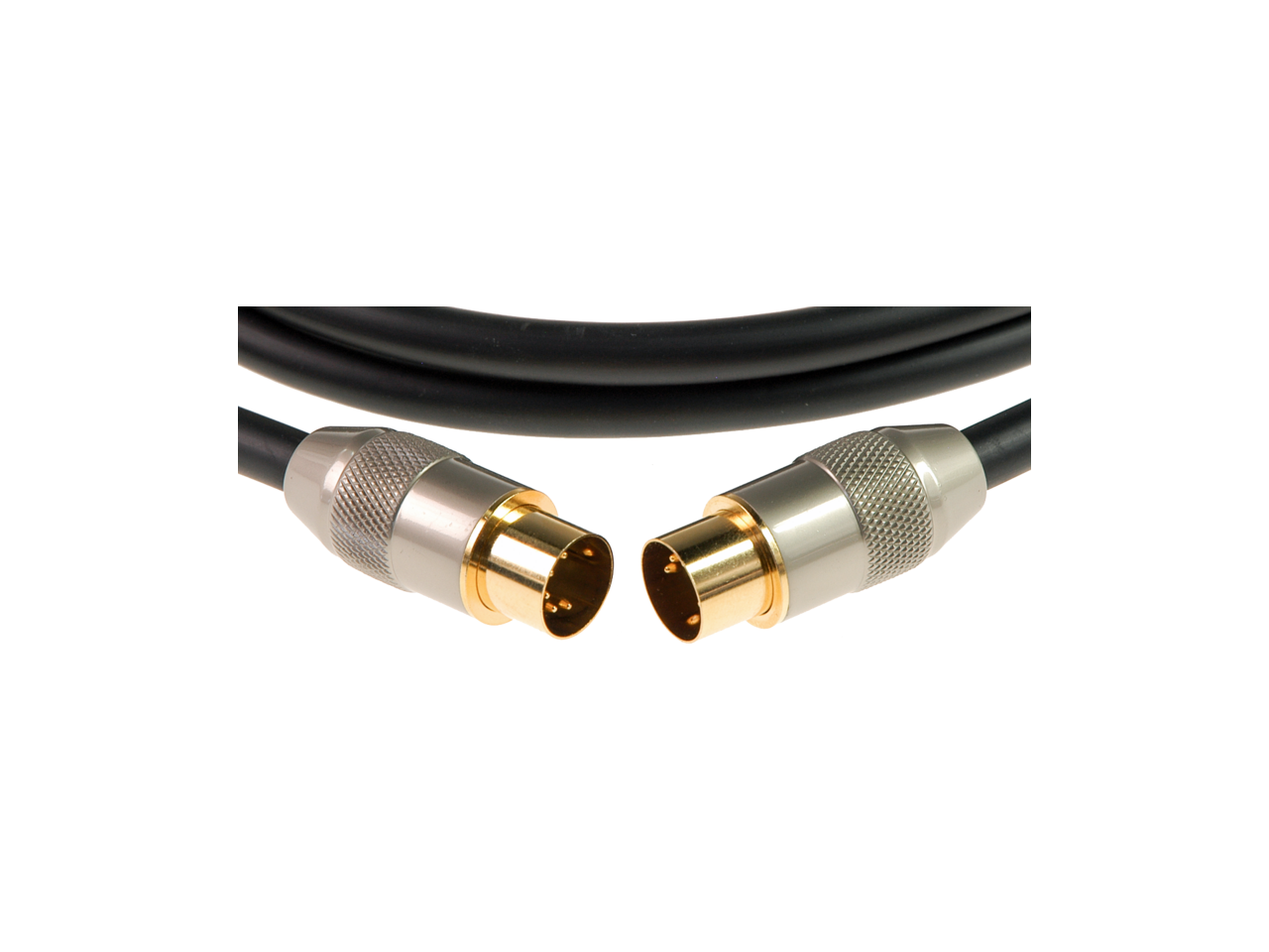 MIDI кабель PRO: DIN5/DIN5, 5 жил, 1,8 м, позолочені контакти. Поперечний переріз провідника 0,14 мм² (AWG 26). Всі 5 контактів підключені: контакти 1 і 3 підключені для живлення пристроїв постійним струмом через кабель MIDI, надзвичайно міцний: підійде в якості з’єднувального кабелю між педаллю MIDI та гітарним підсилювачем або між педалями ефектів та підсилювачем, ергономічні металеві з’єднувачі зі зручними металевими з’єднувальними втулками.