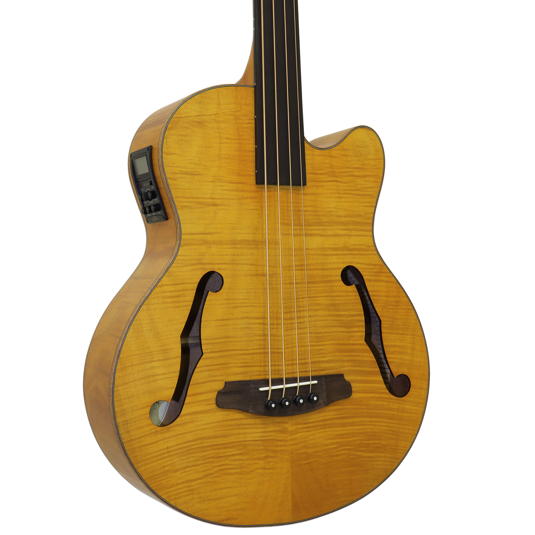 Електроакустична бас гітара. Безладова. 4 струни. Верхня, задня дека і боковини - нато (Flamed Nato). Гриф нато з палісандровою накладкою. Радіус накладки 380mm R (15″). Ширина у нижнього поріжка 43 мм. Мензура 814 мм. Механіка чорна. Електроніка AEQ-4B Preamp & Piezo Pickup з 4х смуговим еквалайзером та тюнером. Колір Stained Brown.