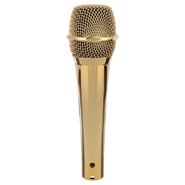 Динамічний студійний вокальний мікрофон, з покриттям із чистого золота 24 карати, суперкардіоїдна спрямованність, 40-19000 Гц, чутливість 2.0 mV/Pa (-54 dB), підключення 3-pin XLR, тримач, вітрозахист і чохол в комплекті.
