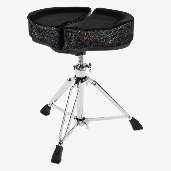 Стілець для барабанщика. Двосекційне сідло 18" з велюровою оббивкою та боковинами з екошкіри. Гвинтове регулювання по висоті: від 18" до 24" (46 - 61 см). База з 3 подвійними ніжками.