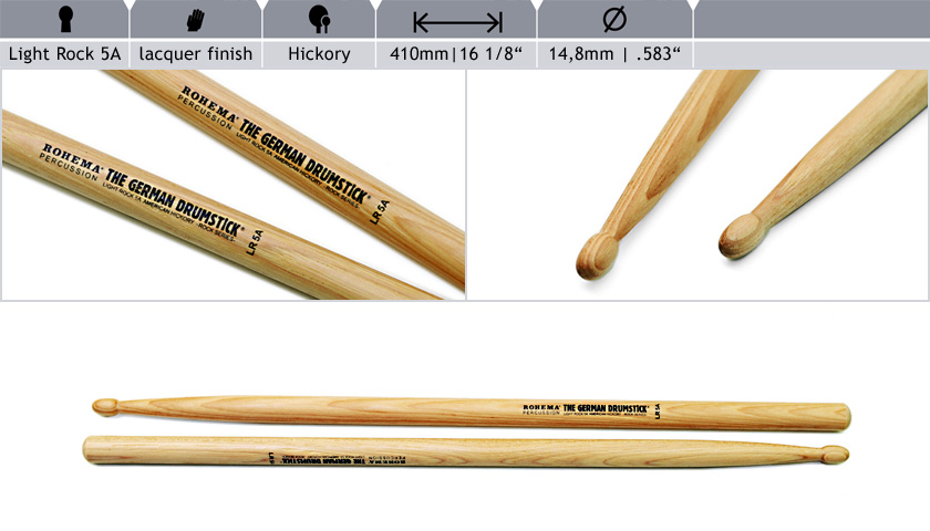 Барабанні палички з горіха, Rock Series, модель Light Rock 5A