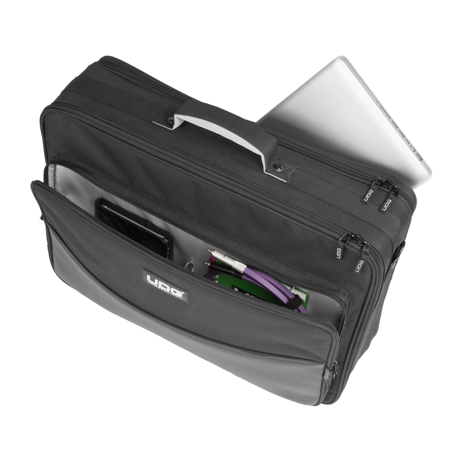 UDG Urbanite MIDI Controller FlightBag Large 8 820 грн. (є в наявності) Urbanite MIDI Controller FlightBag Large - це ультрасучасна стильна і комфортна сумка для DJ і продюсерів. FlightBag дозволяє вам легко подорожувати з вашим обладнанням. Головне відділення включає щільний додаток з гофрованого поліпропілену, який захищає джог-диски і органи управління вашого контролера. Це дозволяє безпечно зберігати свій контролер (такий як NI S8, Pioneer DDJ-RX / SX2 або схожий чи менший за розміром) в головному відділенні, в той час як у другій секції ви можете розмістити поруч 2 ноутбука до 19" або ж додатково стійку для ноутбука UDG Creator laptop stand. У третьому передньому відділенні ви можете зберігати інші предмети першої необхідності: жорсткі диски, навушники, кабелі, вініл з тайм-кодом & аксесуари і які будуть повністю захищені завдяки високоякісній оббивці. Колір: чорний. Вміщає: Pioneer DDJ-FLX6, DDJ-1000SRT, DDJ-800, DDJ-1000, DDJ-RX, DDJ-SX3, DDJ-SX2, DDJ-SX, DDJ-RR, DDJ-SR2, DDJ-SR, DDJ-S1, DDJ-T1, DDJ-Ergo Pioneer XDJ-RR, XDJ-R1, XDJ-Aero NI Traktor Kontrol S3, Traktor Ko