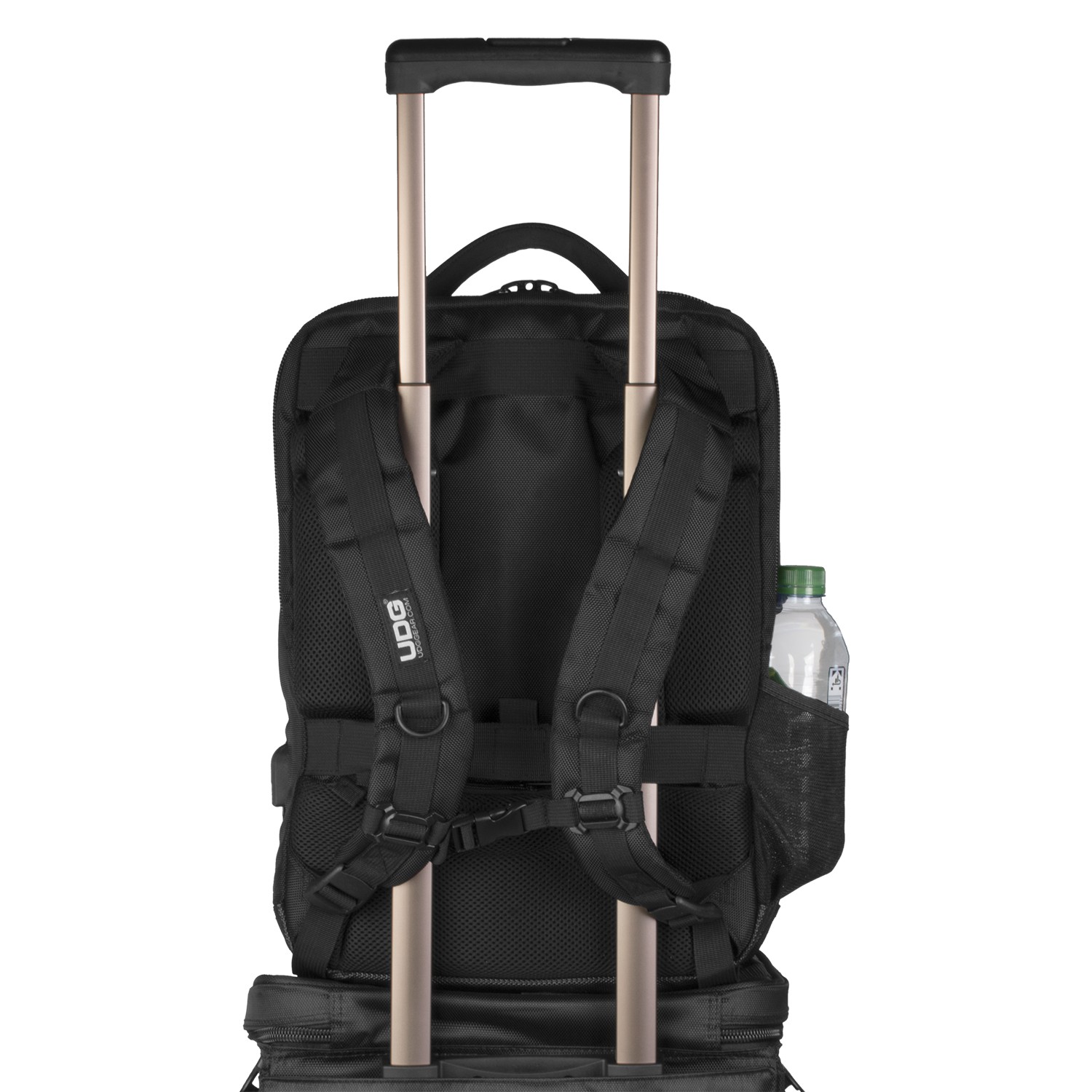 UDG Ultimate Backpack Slim - це легкий, тонкий рюкзак для ді-джеїв, які віддають перевагу більш компактні версії рюкзаків UDG більшого розміру. Підходить: Akai MPC Live II, Pioneer DDJ-XP2, DDJ-200, DJM-S9 / S3 / 450, Numark Scratch, PT01 Scratch або аналогічне за розміром пристрій. Опис: UDG Ultimate Backpack Slim виготовлений з високоякісного водонепроникного нейлону, та містить м'яке 17-дюймове відділення для ноутбука з додатковою неопреновою кишенею для iPad / планшета. Основне м'яке відділення на блискавці з можливістю збільшення, може вміщати портативний програвач або мікшер, кілька 7-ми та 12-ти дюймових контрольних/скретчевих платівок, а також деякі предмети одягу. Відділів, які застібаються на блискавку, достатня кількість, для надійного зберігання мікрофона, USB-накопичувачів, SD-карт, проводів, кабелів і фейдеров, адаптерів змінного струму та інших аксесуарів. Ця сумка поставляється з вбудованим роз'ємом зовнішнього зарядного пристрою USB, кишенею для навушників зі швидким доступом, ергономічною за |