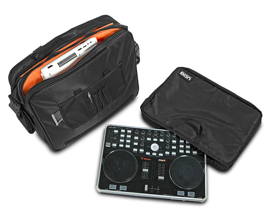 UDG Urbanite MIDI Controller FlightBag Large 8 820 грн. (є в наявності) Urbanite MIDI Controller FlightBag Large - це ультрасучасна стильна і комфортна сумка для DJ і продюсерів. FlightBag дозволяє вам легко подорожувати з вашим обладнанням. Головне відділення включає щільний додаток з гофрованого поліпропілену, який захищає джог-диски і органи управління вашого контролера. Це дозволяє безпечно зберігати свій контролер (такий як NI S8, Pioneer DDJ-RX / SX2 або схожий чи менший за розміром) в головному відділенні, в той час як у другій секції ви можете розмістити поруч 2 ноутбука до 19" або ж додатково стійку для ноутбука UDG Creator laptop stand. У третьому передньому відділенні ви можете зберігати інші предмети першої необхідності: жорсткі диски, навушники, кабелі, вініл з тайм-кодом & аксесуари і які будуть повністю захищені завдяки високоякісній оббивці. Колір: чорний. Вміщає: Pioneer DDJ-FLX6, DDJ-1000SRT, DDJ-800, DDJ-1000, DDJ-RX, DDJ-SX3, DDJ-SX2, DDJ-SX, DDJ-RR, DDJ-SR2, DDJ-SR, DDJ-S1, DDJ-T1, DDJ-Ergo Pioneer XDJ-RR, XDJ-R1, XDJ-Aero NI Traktor Kontrol S3, Traktor Ko
