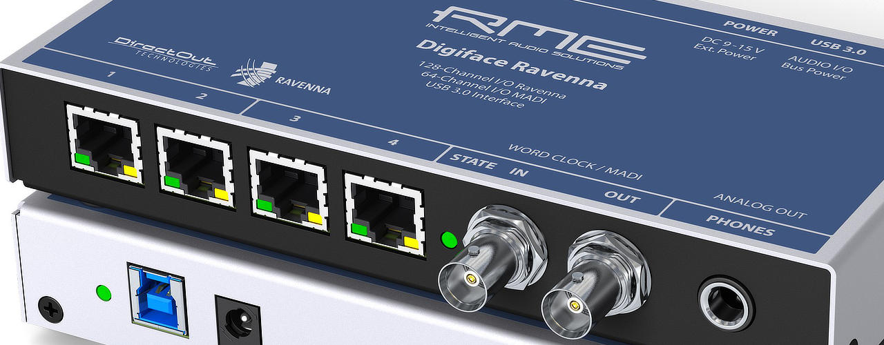 Мобільний аудіоінтерфейс заснований на перевіреному Digiface Dante, але містить модуль RAVENNA, розроблений DirectOut. Пристрій забезпечує передачу до 128 каналів RAVENNA, а також 64 каналів MADI через одинарне підключення USB 3.0. Таким чином RME розширює свою серію Digiface потужною моделлю RAVENNA для USB та с можливістю автономної (standalone) роботи. Загальні характеристики - 128 вхідних / 128 вихідних каналів, 64 / 128 Ravenna I/O, 64 MADI I/O або Word Clock I/O, Аналоговий вихід (для навушників), USB 3.0