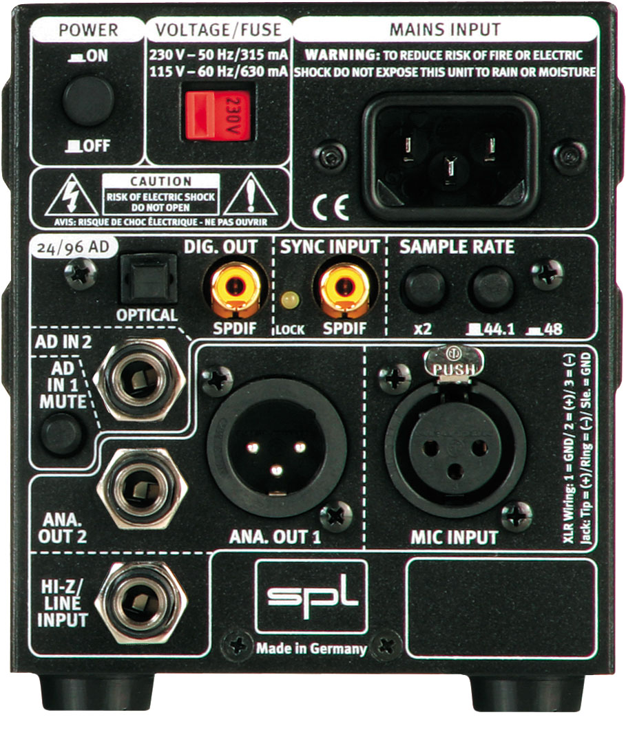 Одноканальний мікрофонний передпідсилювач класу A, вхідний трансформатор Mic від Lundahl, технологія 60 В (динамічний діапазон 125 дБ/підсилення 30 дБ), окрема схема передпідсилювача і лампового передпідсилювача, що налаштовується, обмежувач піків, індуктивний опір ( 200 Ом, 1,2 кОм і 10 кОм ), фільтр верхніх частот 12 дБ/50 Гц, фантомне живлення 48 В.