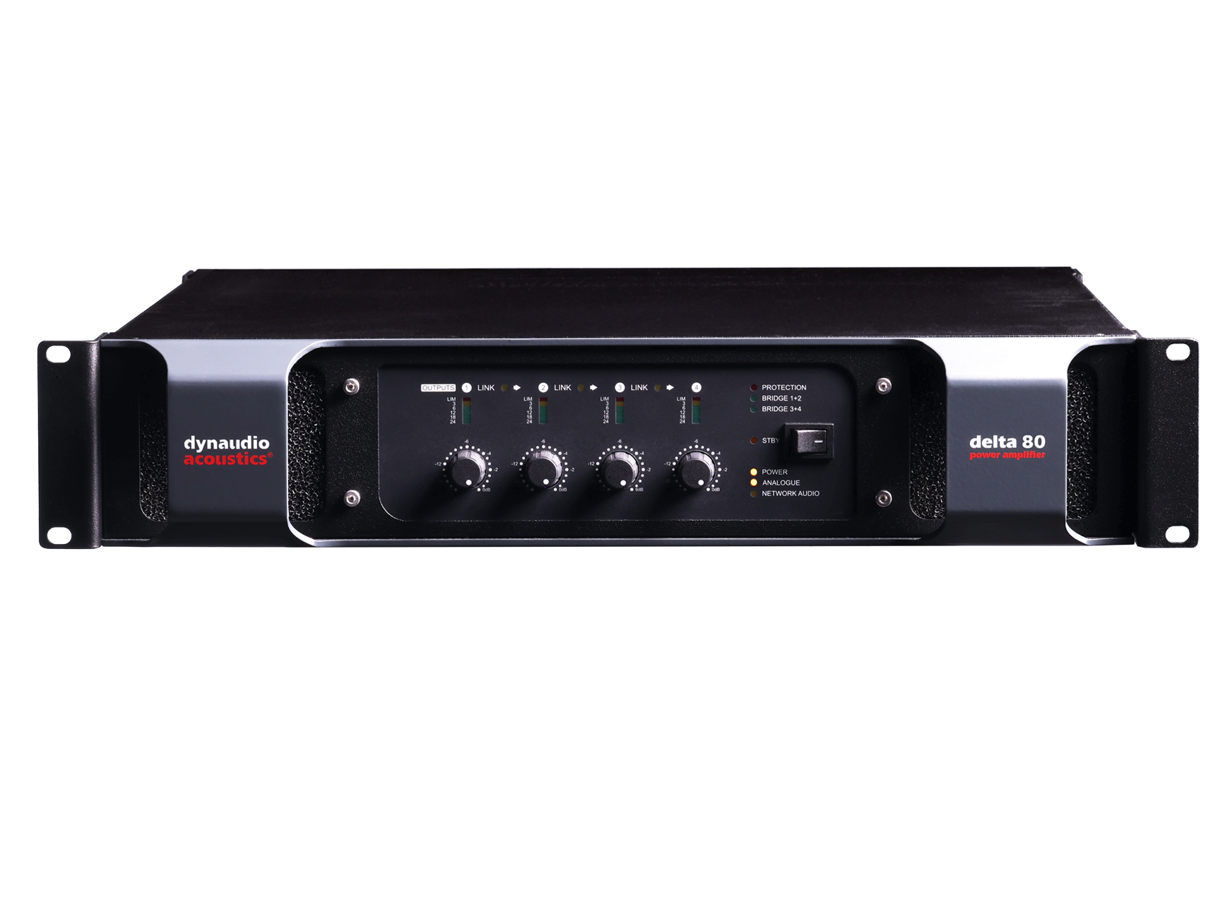 Delta 80. У кожній моделі використовується найякісніша технологія підсилювача потужності, тому ви можете бути впевнені, що звук, що надходить на входи, виходить саме таким, як задумано. Тільки голосніше.2U Delta 80 забезпечує вражаючу потужність 4x 2000 Вт при 4 Ом – або 2x 4000 Вт при мостовому підключенні. І він робить це без особливих зусиль, забезпечуючи при цьому надзвичайно низькі показники спотворень та шуму. Наприклад, коефіцієнт гармонійних спотворень становить лише <0,18% при 1 кГц..Аналоговий або AoIP через Dante? Delta 80 обробляє до чотирьох каналів; система, орієнтована на майбутнє, яка може впоратися з будь-якими завданнями вашої студії. Під час використання Dante ваш звук перетворюється 24-бітними/96 кГц ЦАП. Ви також отримуєте резервне підсилювач, що гарантує, що ваше виробництво може продовжуватися майже незалежно від того, що може статися на стороні підсилювача вашої студії. Хочете стереосистему з чотирма смугами? Просто підключіться до підсилювача Delta DSP одним кабелем Cat 5, щоб уникнут