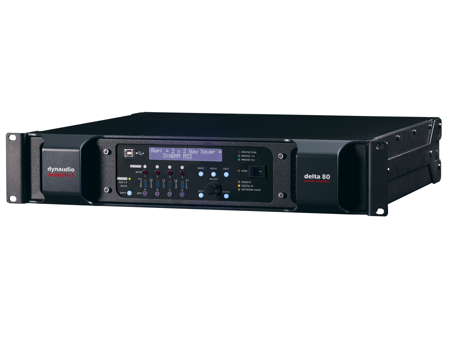 Delta 80 DSP. У кожній моделі використовується найвища якість технології підсилювача потужності, тому ви можете бути впевнені, що те, що надходить, виходить саме так, як задумано. Тільки голосніше. 2U Delta 80 DSP забезпечує вражаючу потужність 4x 2000 Вт при 4 Ом – або 2x 4000 Вт при мостовому підключенні. І він робить це без зайвих зусиль, забезпечуючи низькі показники спотворень та шуму. Наприклад, THD становить лише <0,18% при 1 кГц..Аналоговий чи AoIP через Dante? Delta 80 DSP обробляє до чотирьох каналів; це система, орієнтована на майбутнє, яка може впоратися з будь-якими завданнями вашої студії. Під час використання Dante ваш звук перетворюється ЦАП 24-біт/96 кГц. А якщо виникне потреба в налаштуванні приміщення, ви також отримаєте доступ до складних функцій DSP. Вони охоплюють три динамічні та вісім статичних смуг еквалайзера на вхідний канал, а також дев'ять статичних смуг еквалайзера на вихід. Плюс набір додаткових фільтрів. Ви також отримуєте бездротове керування через додаток DeltaDirect для iPad