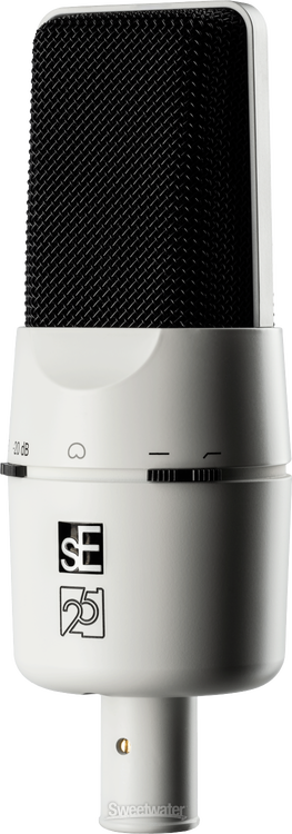 Кут 90 градусів. Мікрофон з малою електретною діафрагмою, призначений для вирішення широкого спектра студійних і концертних завдань. Мікрофон має дискретну схему A класу і беcтрансформаторний вихід, що забезпечує чисте природне звучання на всьому діапазоні частот і дозволяє працювати з абсолютно будь-якими інструментами. Маючи короткий сигнальний тракт і сучасну начинку, sE7 є самим тихим мікрофоном в своєму класі. Тип: конденсаторний, Спрямованість: кардіоїдна, Фільтр Lo-Cut: 80 Гц ,, Діапазон частот: 20 - 20 000 Гц, Чутливість: 19 мВ / Па (-34,5 дБВ), Макс. SPL: 136/156 dBSPL (0/20 дБ), Рівень власного шуму: 16 дБ (A), Динамічний діапазон: 120/140 дБ (0/20 дБ), Відношення сигнал / шум: 78 дБ, Опір: 200 Ом , Живлення: фантомне 48В, Вага: 128 г |