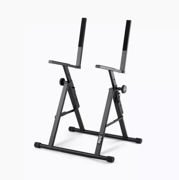 Стійка під комбо. Міцна основа з фіксуючими перехресними підсиленнями забезпечує стабільну підтримку підсилювача Надійно утримує підсилювач над підлогою, захищаючи його від пошкоджень Опорні важелі регулюються по висоті, щоб підходити для різних розмірів підсилювачів і типів використання Опорні важелі та ніжки основи складаються для зручного зберігання та транспортування