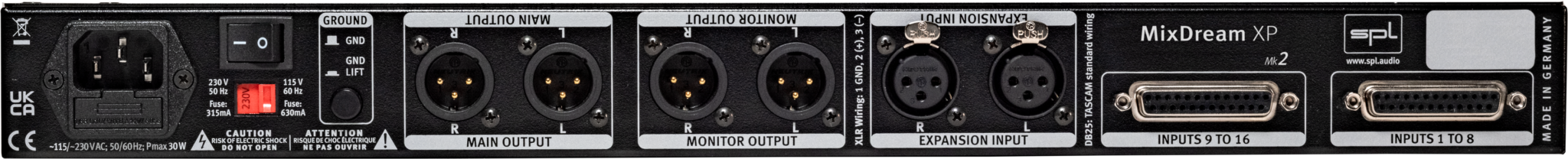 SPL MixDream 141 372 грн. (немає) Лінійний суматор MixDream (2384) має 16 каналів. На кожному каналі є лінійний вхід, світлодіодний індикатор наявності сигналу, посил-повернення, трьохпозиційний перемикач призначення каналу на головний мікс і активності посилу-повернення, світлодіодний індикатор активності посилу-повернення, світлодіодний індикатор відключення каналу від головного міксу, вихід каналу. Є глобальний перемикач і світлодіодний індикатор активності посилів-повернень всіх каналів. Кожна пара каналів розділена між лівим і правим каналами міксу, однак для трьох перших пар каналів є індивідуальні перемикачі та світлодіодні індикатори монорежиме. У майстер-секції є стереовход для підключення розширення (в якості якого може використовуватися такий же пристрій) з вимикачем і світлодіодним індикатором активності, посил-повернення з регулятором рівня посилу, парою світлодіодних індикаторів наявності сигналу повернення, перемикачем і світлодіодним індикатором активності, розширювач стереообраза з регулятором глибини ефекту (точніше, ширини)
