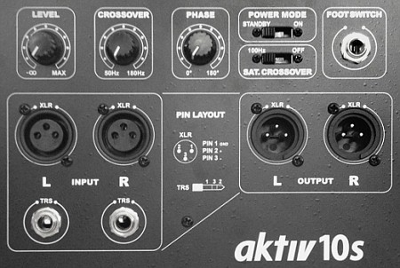Активний сабвуфер, 10 ", акустична схема ФМ; потужність підсилювача: 150 Вт на 100 Гц при Кг 0.1%; частота кросовера: 50 Гц - 180 Гц (регулюється); вихід на сателіти: 100 Гц фильт чи ні фільтрації (перемикач); перемикач фази; підстроювання чутливості входу; режим роботи: standby і включено; входи: балансні XLR, небалансні 1/4 "TRS; виходи: балансні XLR вхід для педалі mute; габарити: 340 x 340 x 340 мм; вага: 14 кг