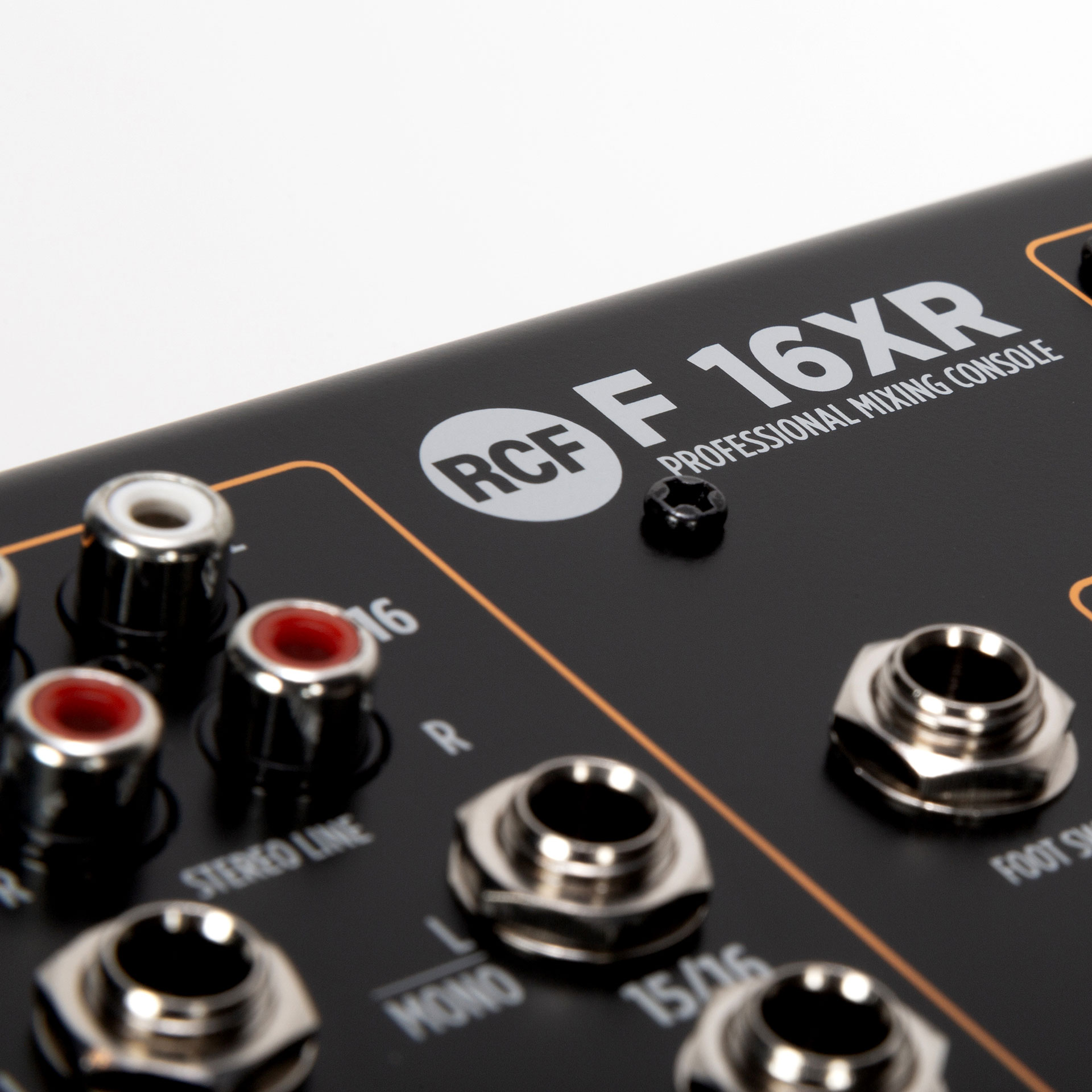 RCF F 10XR 14 448 грн. (є в наявності) Аналоговий мікшерний пульт на 10 каналів: 4 мікрофонні входи, 2 моно лінійні входи, 4 стерео лінійні входи. Вбудований USB-аудіоінтерфейс для стереозапису та відтворення, підтримка DAW. Вбудований блок ефектів PRO DSP з 16 пресетами (реверберації, затримки, хоруси, фленджери та ехо). Балансований аудіотракт від входу до виходу, виходи XLR та 1/4". 48V фантомне живлення, компресори з одним регулятором на входах 1 та 2. Габарити (ШхВхГ): 294 x 82 x 275 мм, вага: 2,8 кг.