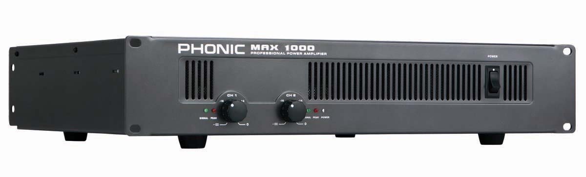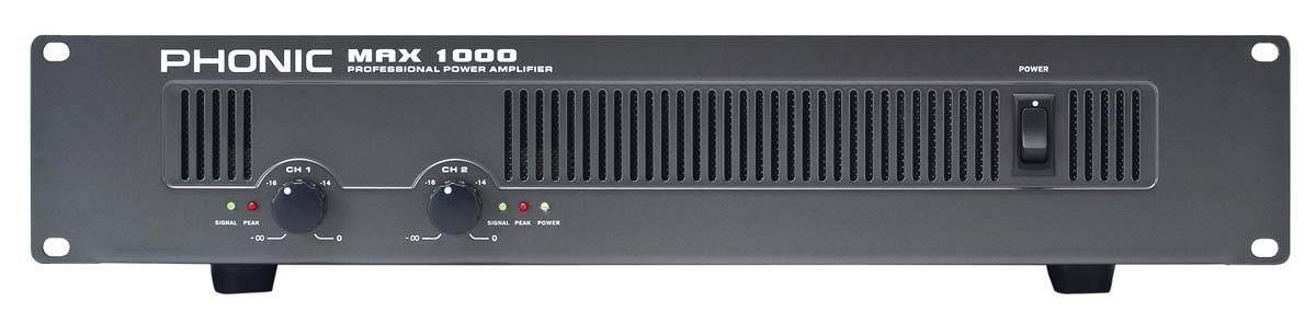 Phonic MAX 1500 PLUS 12 852 грн. (немає) Підсилювач потужності (2U), клас Н, 2 х 280 Вт 8 Ом, 2 х 450 Вт 4 Ом, міст: 900 Вт 8 Ом, (EIA), спотворення менше 0.02%, сигнал / шум 100 дБ, вхід: XLR і Jack , вихід - клеми і Speakon, 482.6 x 88 x 415 мм, 14,6 кг