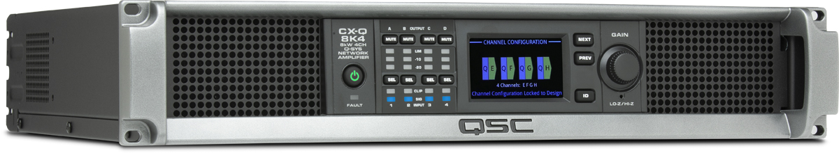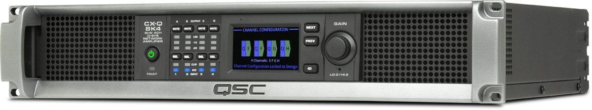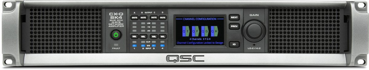 Підсилювач потужності чотирьохканальний (2U), гнучкий поканальний розподіл номінальної потужності, сумарно до 8000 Вт, режими bridged A + B / C + D, parallel AB/CD, parallel ABC, combined bridged/parallel AB + CD, parallel ABCD, незалежний вибір типу, вихідне навантаження каналів підсілювача (4 Ом, 8 Ом, 70 В, 100 В), входи: 4 x 3-pin MIC/LINE (помаранчеві Euro роз'єми), 8xGPIO для віддаленого управління, вихід 8-pin роз'єми Euro Phoenix (зелені), клас D, захист вихідних каскадів, 11.8 кг, Q-LAN інтерфейс. Працює тільки з системою Q-SYS.
