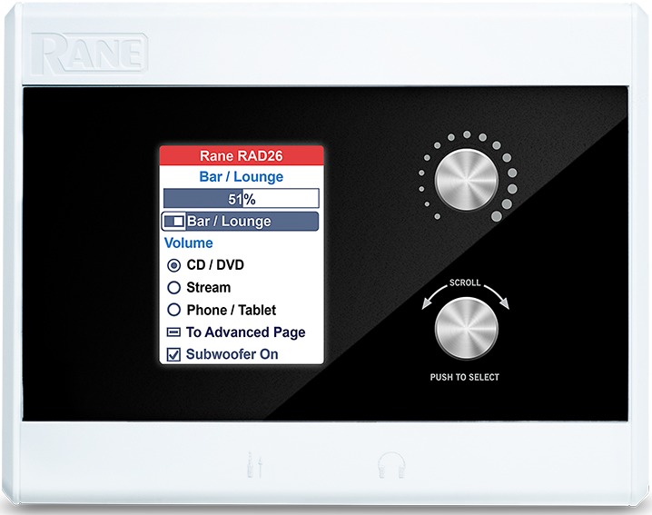 RAD26 забезпечує будь-яке приміщення управління кінцевим користувачем за допомогою кольорового РК-дисплея та поворотних кодерів. Він також має подвійний універсальний аудіо-інтерфейс вводу-виводу, вхідні роз'єми лінійного рівня для місцевих потреб, вихід для навушників і подвійний 4-ватний підсилювач, все за допомогою одного екранованого кабелю cat5e (або краще). Три входи логічного закриття та три виходи активно-низького рівня додають можливостей управління. Вбудований підсилювач живить невелику стереопару кімнатних динаміків, або його можна переключити в програмне забезпечення для живлення одного 8-ватного динаміка. RAD26 забезпечує достатньо вводу-виводу та управління для підтримки однієї кімнати в аудіосистемі HAL