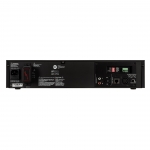 Активний інсталяційний підсилювач 19" 1U, 2 x 250 Вт. 2 входи на канал, подвійне живлення від змінного та постійного струму, пріоритетна схема. Частотний діапазон: 40 Гц - 16 кГц. Підсилювач класу D з високою ефективністю. Світлодіодні індикатори стану на передній панелі. Колір - чорний.