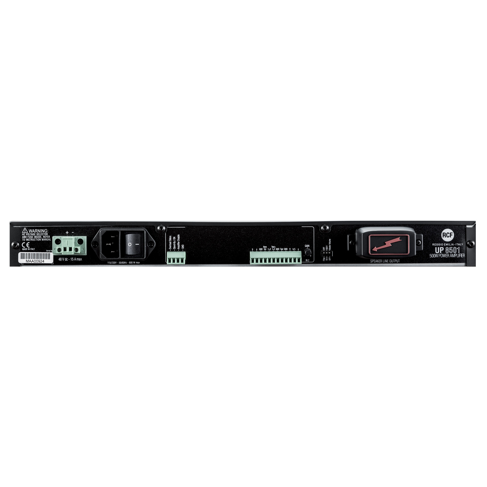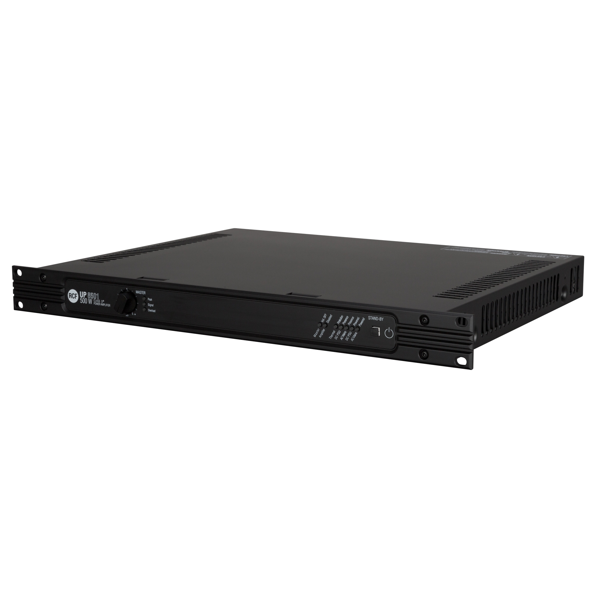 Активний інсталяційний підсилювач 19" 1U, 500 Вт. 2 входи на канал, подвійне живлення від змінного та постійного струму, пріоритетна схема. Частотний діапазон: 40 Гц - 16 кГц. Підсилювач класу D з високою ефективністю. Світлодіодні індикатори стану на передній панелі. Колір - чорний