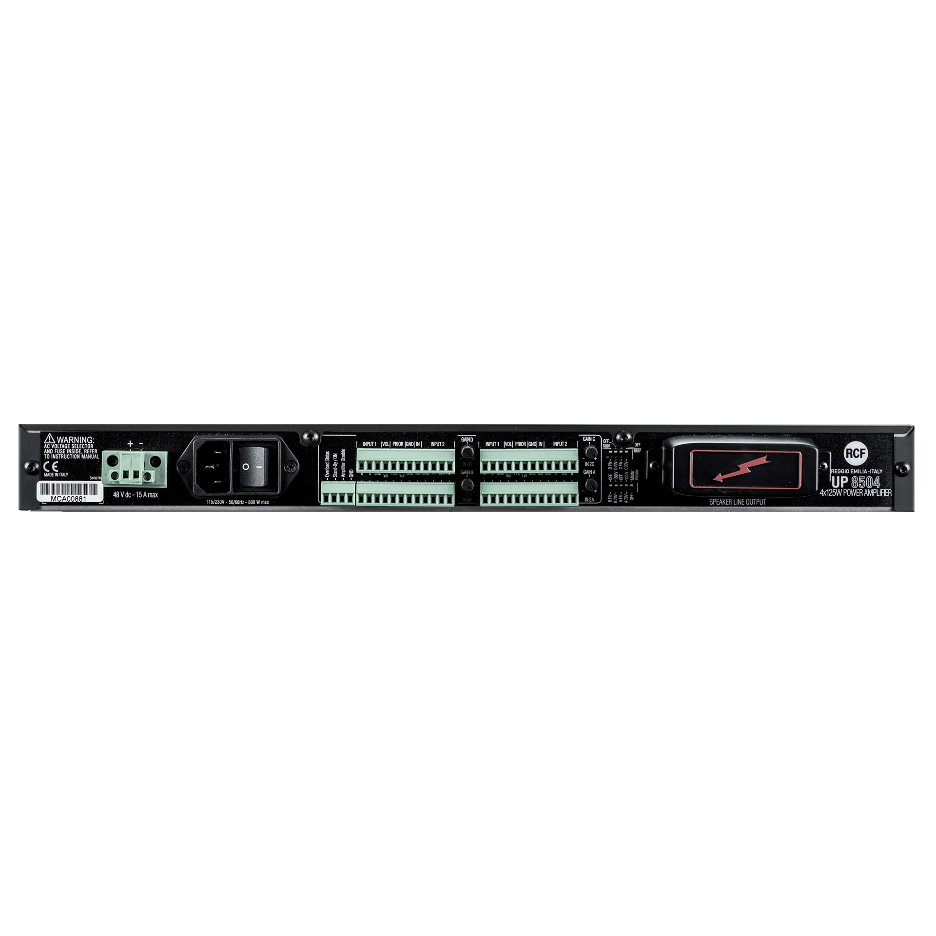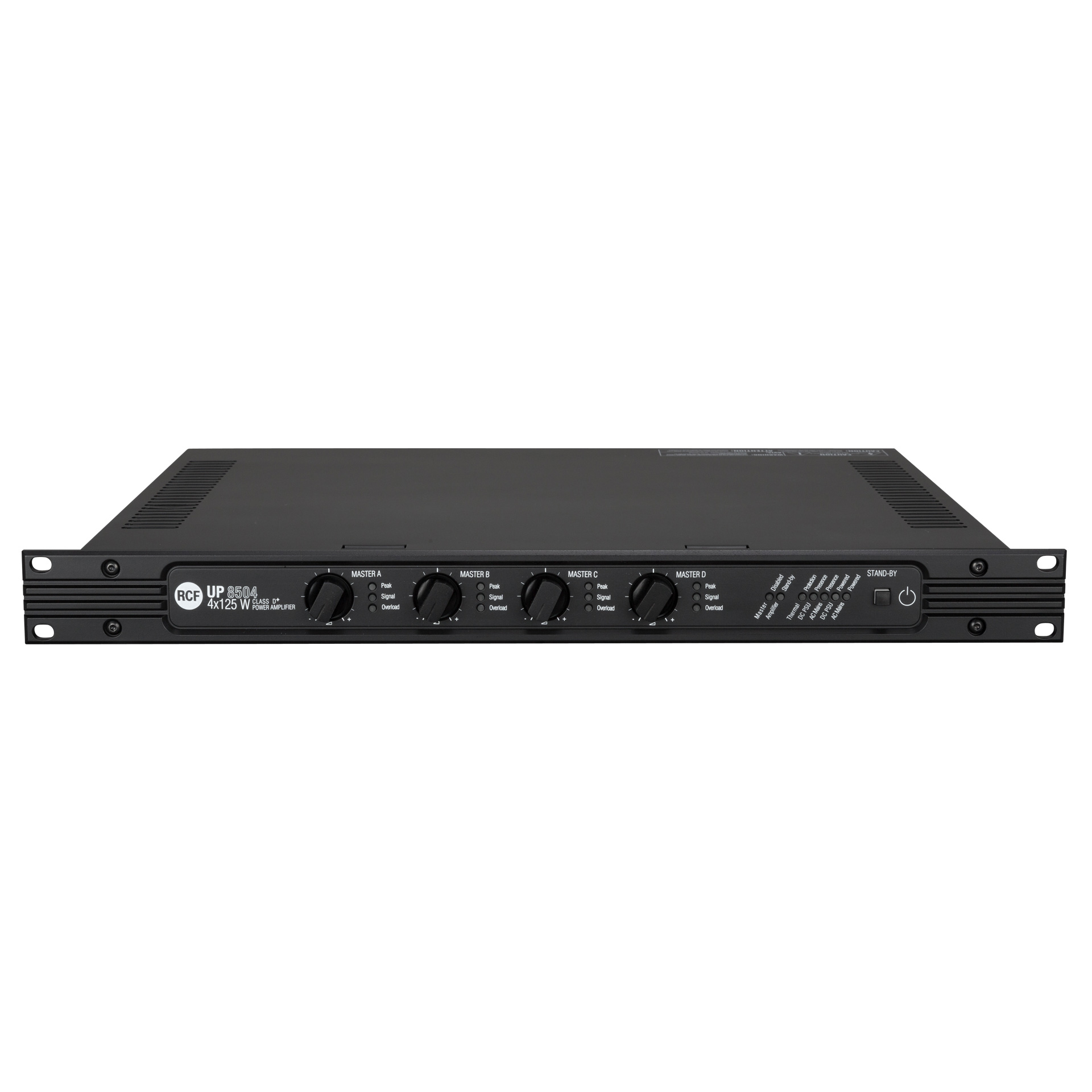 Активний інсталяційний підсилювач 19" 1U, 4 x 125 Вт. 2 входи на канал, подвійне живлення від змінного та постійного струму, пріоритетна схема. Частотний діапазон: 40 Гц - 16 кГц. Підсилювач класу D з високою ефективністю. Світлодіодні індикатори стану на передній панелі. Колір - чорний.