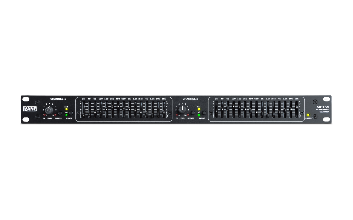 Мікрографічний еквалайзер Rane ME15S - це двоканальна 2/3-октавна конструкція з 20-міліметровими повзунками в одній стійці. Він оснащений перемикачем діапазону для високої роздільної здатності повзуна в режимі ± 6 дБ - еквівалентна роздільна здатність повзункам 45 мм, що зустрічаються на моделях з подвійною стійкою. Режим ± 12 дБ забезпечує широкий діапазон управління звуком системи. Активні фільтруючі секції мають інноваційний дизайн Rane з постійною швидкістю (постійною пропускною здатністю). Constant-Q означає, що пропускна здатність кожного окремого фільтра гарантовано буде досить вузькою, щоб запобігти необгрунтованій взаємодії між фільтрами, але достатньо широкою, щоб отримати точно такий тип корекційної кривої, що вимагається навіть у найнезвичніших акустичних умовах. Це суттєво відрізняється від традиційних конструкцій минулого, обтяжених прикрою характеристикою зміни смуги пропускання при зміні величин посилення / скорочення.
