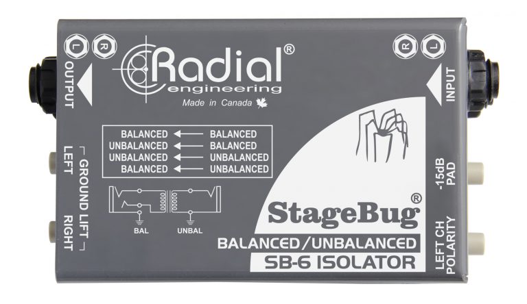 Radial SB-1 Active 5 040 грн. (є в наявності) Активний директ-бокс, спеціально розроблений для акустичних та електро гітар, забезпечує лінійну частотну характеристику від 20 Гц до 20 кГц, динамічний діапазон понад 100 дБ, спотворення менше ніж 0,005%, оснащений вхідним опором 800 кОм та вихідним 330 Ом, має вхідний роз'єм 1/4 дюйма та вихідний XLR, підтримує фантомне живлення 48 В, споживає 5 мА, оснащений атенюатором -15 дБ для зниження чутливості входу та інверсією фази на 180°, розміри складають 114 мм x 47 мм x 34 мм, вага 250 г.