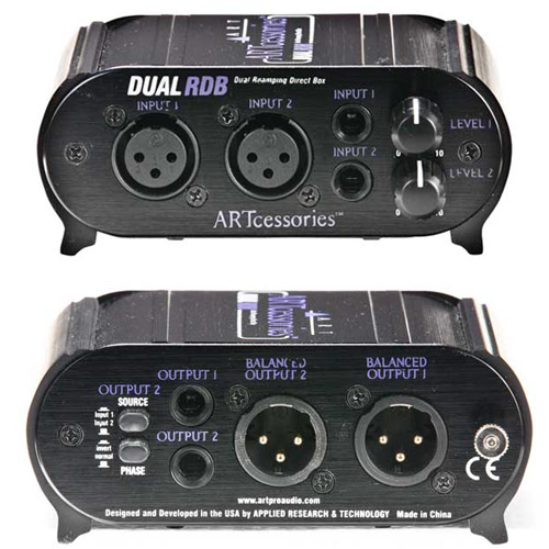ART dPDB 2 606 грн. (є в наявності) Двоканальний пасивний директ-бокс у металевому корпусі, призначений для перетворення лінійного небалансного сигналу в балансний для передачі в мультикор або мікшерний пульт, на вході кожного каналу два роз'єми 1/4" Jack (небалансні), вхідний імпеданс 50 кОм, перемикач атенюатора з режимами 0 дБ, -20 дБ, -40 дБ, на виході роз'єм XLR (балансний), імпеданс 600 Ом, перемикач Ground Lift для усунення замкнутого контуру заземлення, паралельний вихід 1/4" TS Jack, частотний діапазон 10 Гц – 50 кГц, розміри 146 × 127 × 51 мм, вага 1.1 кг.