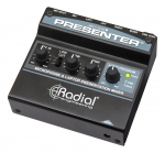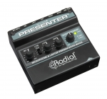 Radial ProAV2 12 348 грн. (є в наявності) Пасивний стерео директ-бокс, розроблений для аудіо- та відеоінтеграторів, оснащений входами 1/4", RCA, 3.5mm, XLR, виходом XLR, частотний діапазон 20 Гц – 18.5 кГц (±0.2 дБ), динамічний діапазон 128 дБ, максимальний вхідний сигнал +18 дБ при 20 Гц, трансформатор Eclipse ET-DB2 з коефіцієнтом трансформації 12:1, -15 дБ PAD, Ground Lift, конструкція з 14-міліметрової сталевої обшивки, розміри 165 x 102 x 47 мм, вага 730 г.