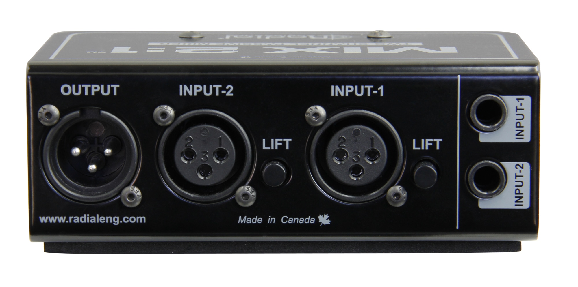 Пасивний двоканальний мікшер, дозволяє з’єднувати два аудіосигнали в один моно-канал, не потребує живлення, має входи 1/4" TRS та XLR, моно-вихід XLR, індивідуальні регулятори рівня для кожного входу, перемикачі фази та ground lift, можливість обходу регуляторів гучності, частотна характеристика 20 Гц – 20 кГц, рівень шуму -113 дБ, динамічний діапазон >133 дБ, максимальний вхідний рівень >+20 дБ, вхідний імпеданс 8 кОм, вихідний імпеданс 1 кОм, розміри 127 x 84 x 45 мм, вага 0,54 кг.