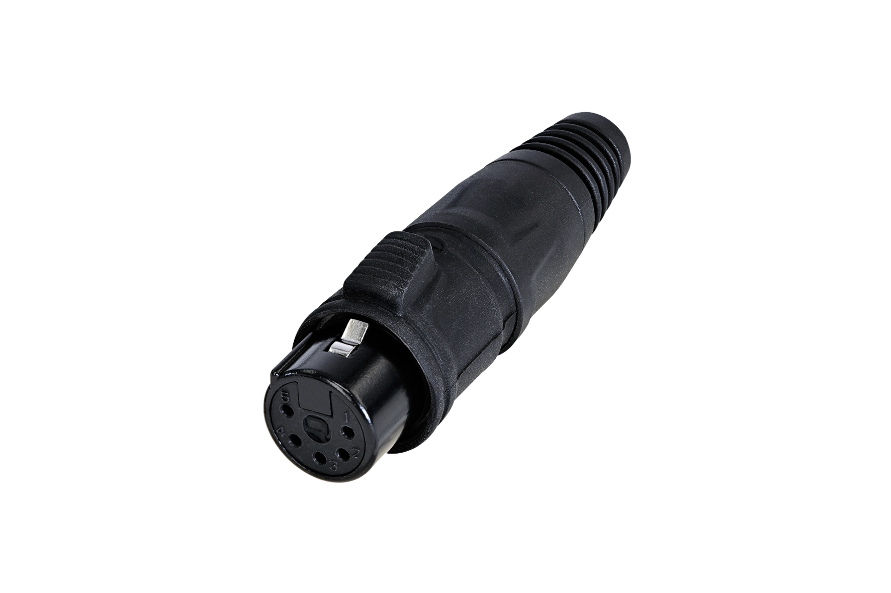 Кабельний роз'єм XLR-"мама" 5-контактний, чорний корпус, позолочені контакти під пайку, IP65. В упаковці 100 шт.