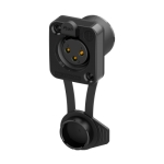 Панельний роз'єм XLR "мама" 3-контактний з замком та кришкою. TOP (TRUE OUTDOOR PROTECTION), IP65, UL94 V-0, робочі температури -30 °C...+80 °C, фланець типу "D", фронтальний монтаж. Контакти з золотим напилення для пайки. Міцний литий корпус з чорним покриттям (ударостійкий, вогнестійкий, стійкий до ультрафіолету). Повна повітронепроникність. В упаковці 100 шт.