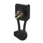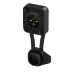 Панельний роз'єм XLR "тато" 3-контактний з замком та кришкою. TOP (TRUE OUTDOOR PROTECTION), IP65, UL94 V-0, робочі температури -30 °C...+80 °C, фланець типу "D", фронтальний монтаж. Контакти з золотим напилення для пайки. Міцний литий корпус з чорним покриттям (ударостійкий, вогнестійкий, стійкий до ультрафіолету). Повна повітронепроникність. В упаковці 100 шт.