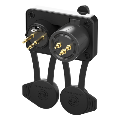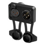 Панельний роз'єм XLR комбінований "мама" + "тато" 3-контактний з замком та кришкою. TOP (TRUE OUTDOOR PROTECTION), IP65, UL94 V-0, робочі температури -30 °C...+80 °C, фланець типу "D", фронтальний монтаж. Контакти з золотим напилення для пайки. Міцний литий корпус з чорним покриттям (ударостійкий, вогнестійкий, стійкий до ультрафіолету). Повна повітронепроникність. В упаковці 100 шт.