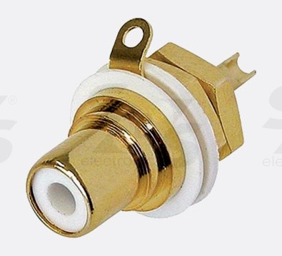 RCA Phono (Cinch) панельний роз'єм "мама". Позолочені контакти. 2-полюсний. Кольорове кодування: 0-чорний, 2-червоний, 4-жовтий, 5-зелений, 6-синій, 9-білий.