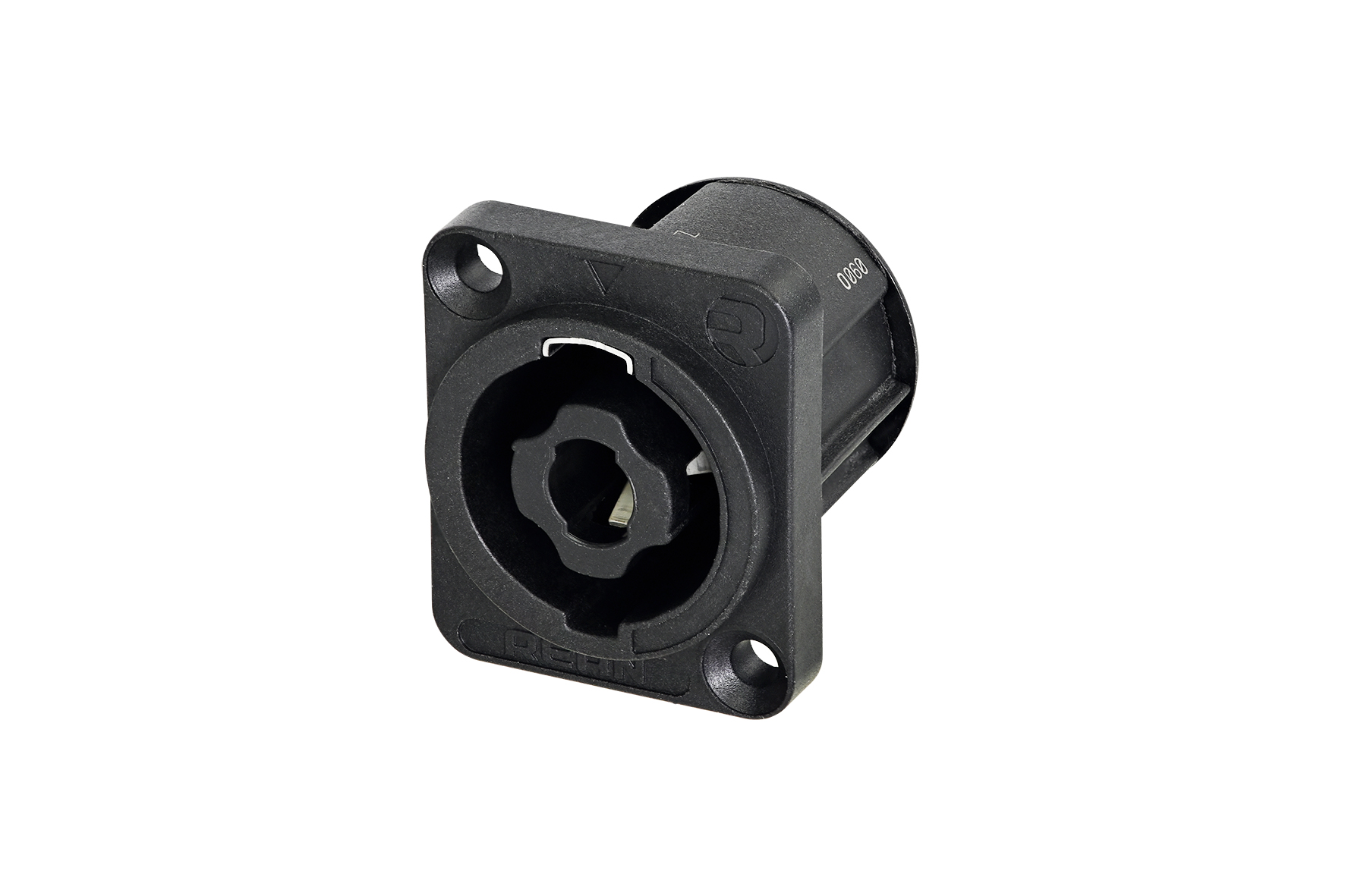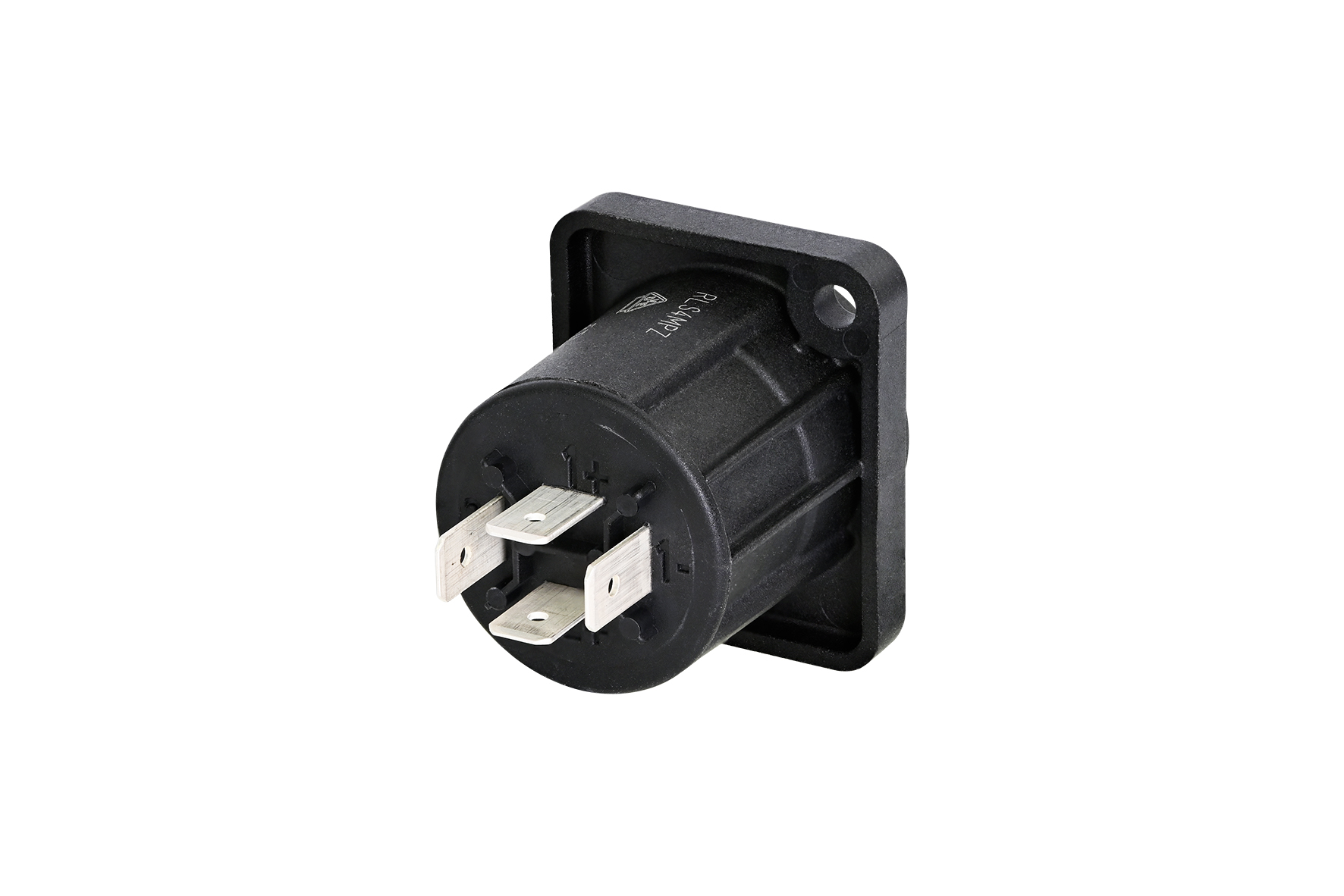 Панельний 4-полюсноий роз'єм для підключення акустичних систем, з зенкованими отворами, фланець типу "D", клеми для підключення 4,8 мм x 0,5 мм (3/16" flat tabs contacts). В упаковці 100 шт.